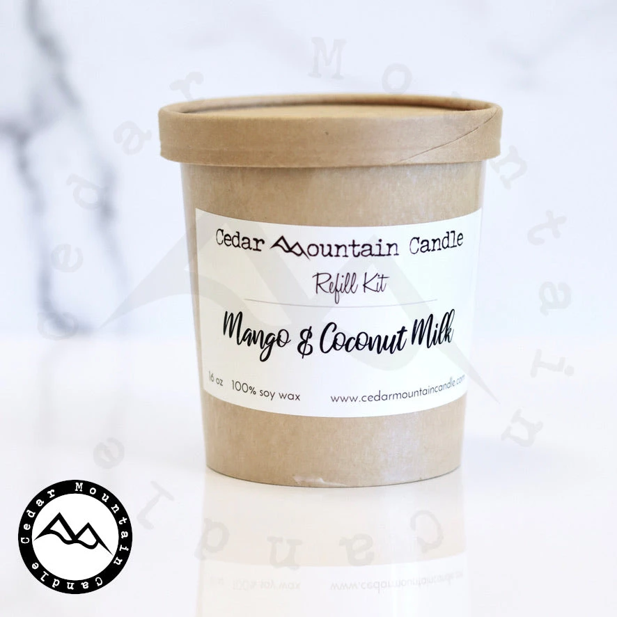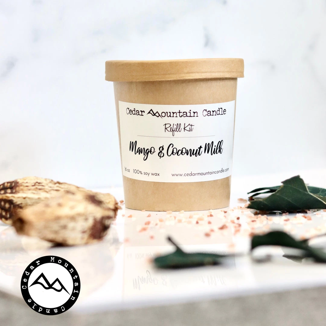 Cedar Mountain Candle refill kits are made with 100% natural soy wax grown in the United States and infused with natural essential oils.Â