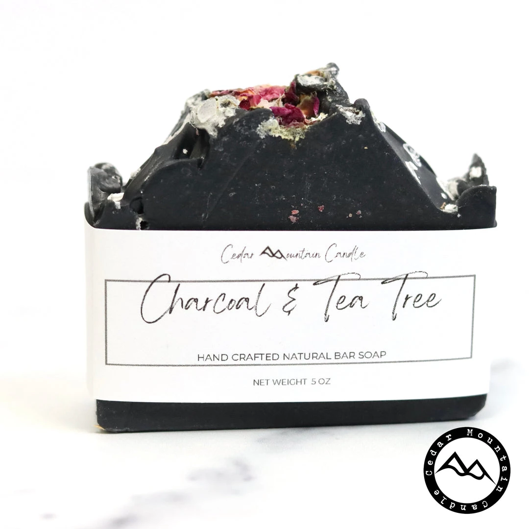 Charcoal and Tea Tree is a cold process soap made with activated charcoal and infused with tea tree in combination with nourishing oils like coconut oil and olive oil.Â