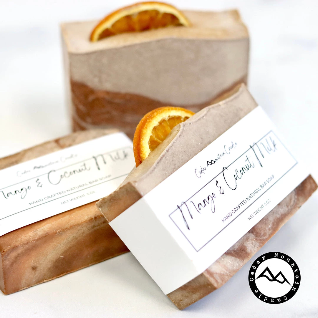 Mango & Coconut Milk is a cold process soap made with nourishing nourishing coconut and olive oils with added orange slices.Â