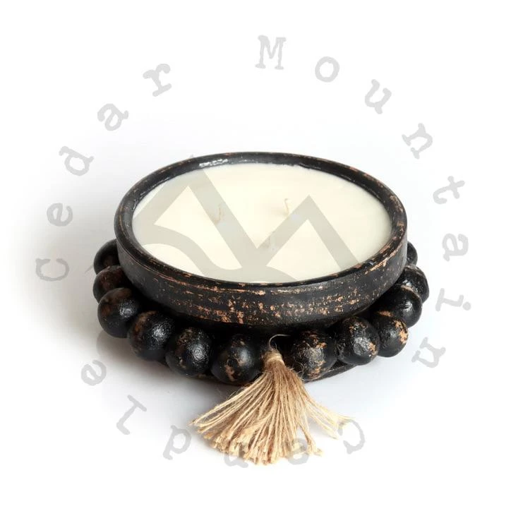 Our 3 wick round pottery bowls are beautifully handmade with beaded tassels for an authentic rustic farmhouse style home decor and filled with dye-free soy wax and cotton wicks. Available to order wholesale. Choose your scent. Choose your color. Each candle is shrink wrapped to protect it from shipping and dust until ready to burn. When the candle is gone just wipe clean with warm water and decorate as you please.