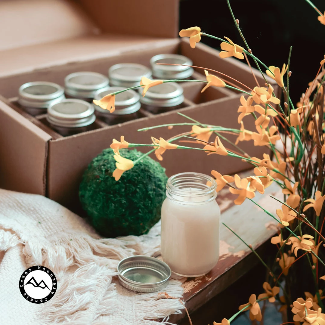 Cedar Mountain Candle’s spring & summer mini candle set includes eight mini mason jar candles. Choose any eight of our amazing spring summer scents.Â