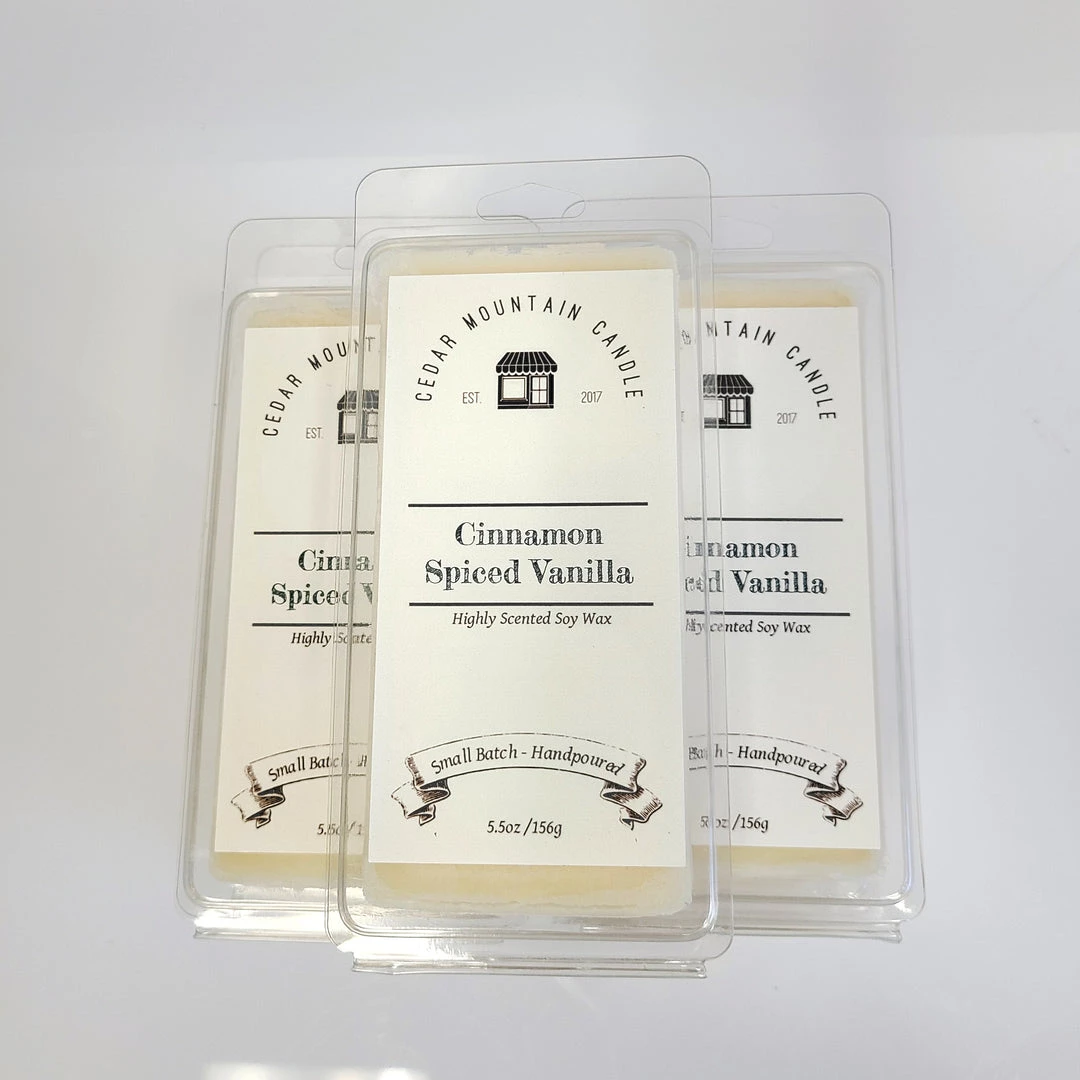 Cedar Mountain candles and wax melts are 100% soy wax made in small batches and hand poured in each container. We do not use any dyes or add any chemicals to our products to enhance scent profiles. We take pride in providing a clean burning soy candle that is phthalate free, dye free and many are infused with essential oils.