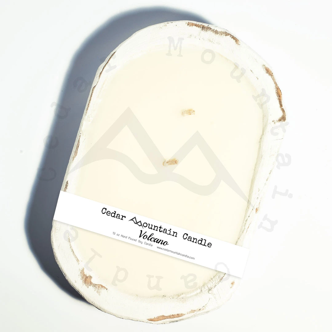 Each candle is filled with dye-free soy wax and cotton wicks. Each dough bowl is made from pine wood. Each candle is shrink wrapped to protect it from shipping and dust until ready to burn. When the candle is gone just wipe clean with warm water and decorate as you please.